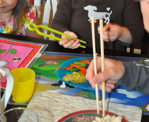 And finally you can’t have a Chinese feast without chopsticks. We had normal bamboo chopsticks for the adults but I wanted to find something a little easier for the kids to avoid frustration. My favourite online kitchen store, Golda’s Kitchen and great