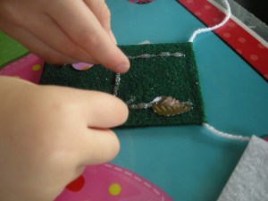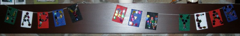 I found a cute idea for a banner at Kaboose. I didn’t have any nice felt around the house so we went by Walmart and I found some cool sparkly felt (the sparkles don’t show up very well in the picture).